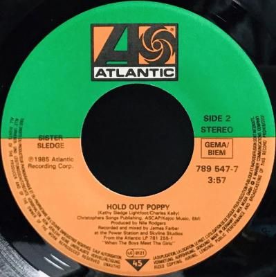 FRANKIE HOLD OUT POPPY ARTIST : SISTER SLEDGE TYPE : POP / FUNK / SOUL LABEL : ATLANTIC STATUS : MINT この兄弟姉妹グループは「ウィ・アー・ファミリー」や「ヒズ・ザ・グレイテスト・ダンサー」といったディスコ時代のヒット曲で国際的な成功を収めた。1985年には「フランキー」も大ヒットした。彼らの楽曲はどれもスタイリッシュで、本当に甘美だ。