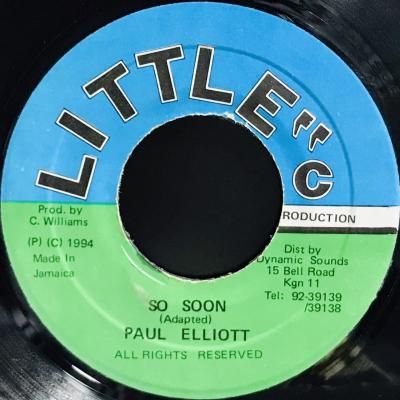 SO SOON VERSION ARTIST : PAUL ELLIOTT TYPE : LOVERS / 90'S DANCEHALL LABEL : LITTLE C STATUS : EX れは、偉大な「デヴィッド・ルフィン」が最初に歌ったダンスホールのカバー曲です。 それ自体が素晴らしいラブソングです。